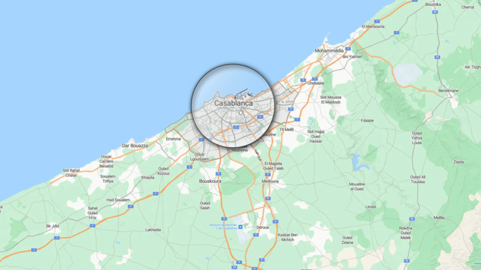Casablanca is located on Morocco’s Atlantic coast in North Africa. It lies about 240 km (150 miles) southwest of Rabat, the capital, and roughly 240 km north of Marrakech. As the country’s largest city and main port, it faces the Atlantic Ocean—making it a gateway for trade, culture, and tourism.