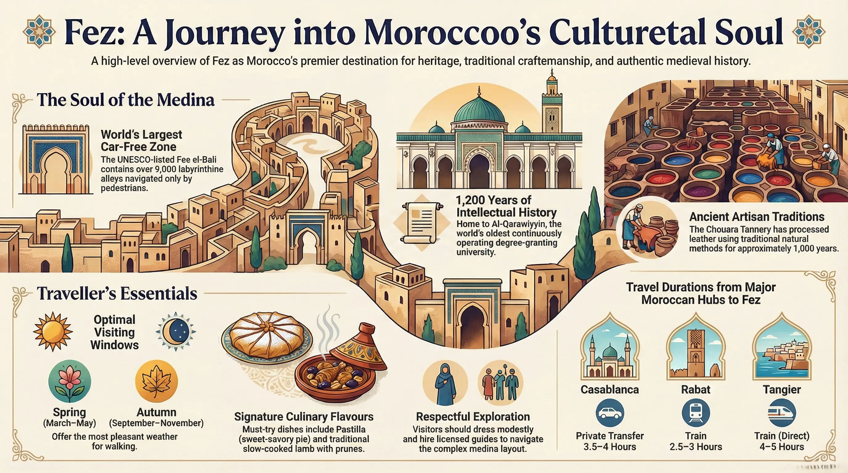 Is Fez good for tourists? The answer depends on what you seek. If you want a deep dive into authentic Moroccan culture, traditional craftsmanship, and intellectual heritage, Fez delivers experiences that few cities can match.