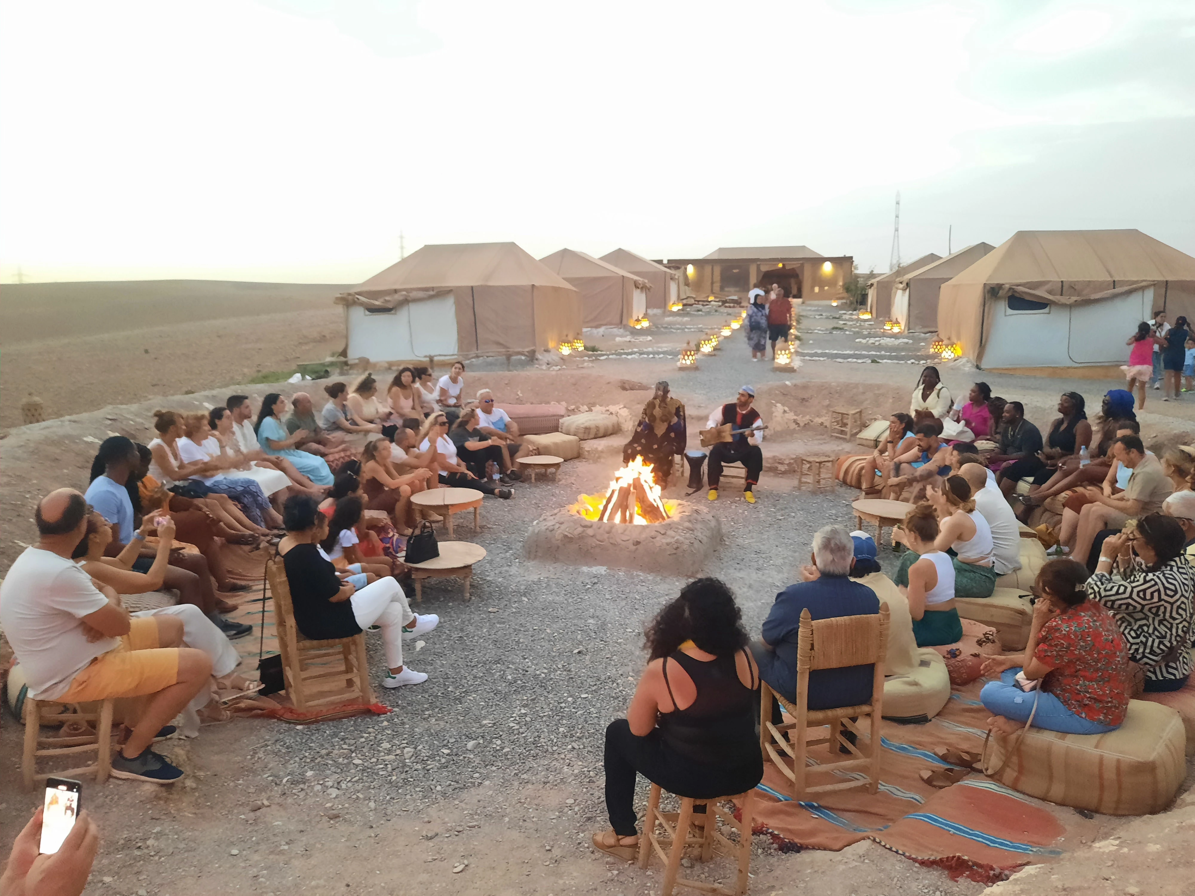 Cool winter weather returns: 14–18°C (57–64°F) days, 5–7°C (41–45°F) nights. Clear days offer golden light perfect for photography. The contrast between crisp air and warm campfires creates atmospheric evenings. Morocco Classic Tours arranges Christmas and New Year celebrations with heated tents and warm blankets. Pack insulated jackets, thermal layers, and warm accessories.